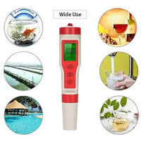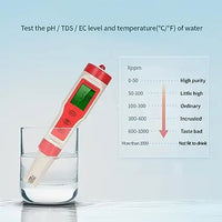 - The pH tester is a 4-in-1 device that can measure pH, TDS, EC, and TEMP values.