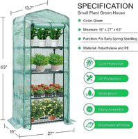 Mini 4-Tier Greenhouse with Green PE Cover and Shelf