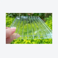 Polycarbonate is a thermoplastic that comes in a transparent sheet.